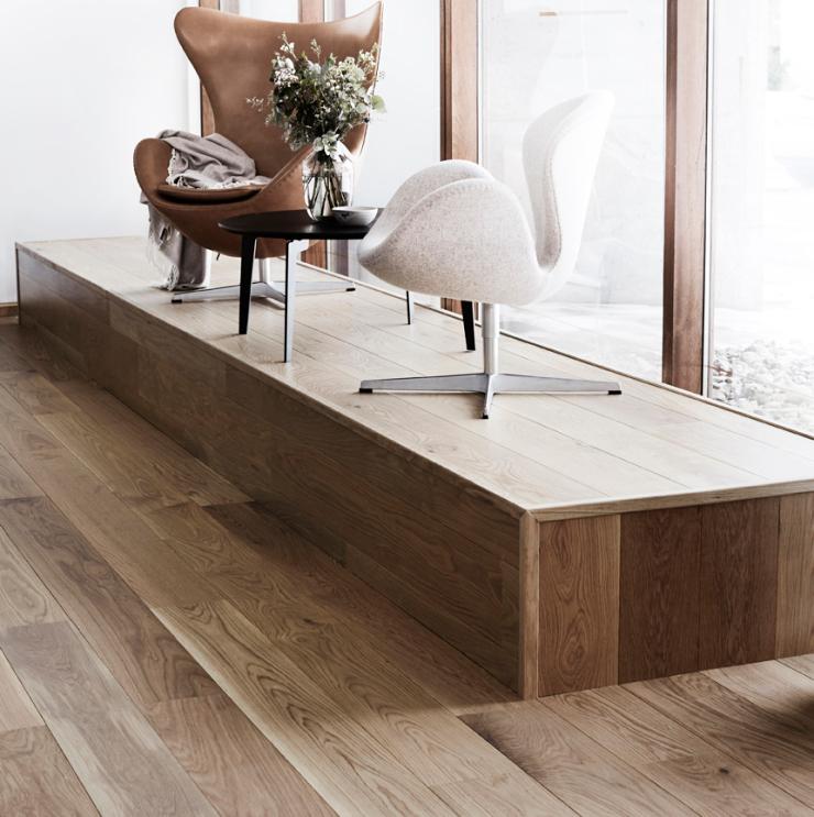 The many world famous classic pieces and contemporary designs made in collaboration with leading international designers sit perfectly on Junckers’ signature long-length planks, which add a further architectural dimension to the space. Finished with our newly reformulated UltraMatt Lacquer, the floor has a completely natural, matt appearance which looks just like an oiled finish. Developed in response to the growing trend for natural, ‘unfinished’ looking floors, Junckers UltraMatt Lacquer protects the solid wood floor, making it durable, hardwearing and easy to care for. Even though it looks just like an oiled finish with no surface sheen, the new lacquer gives the floor superior protection against spills and scuffs. The natural, matt appearance combined with a highly durable, easy to clean surface has made UltraMatt Lacquer Junckers’ best selling finishing product – over 80% of all pre-finished floors are sealed with it.