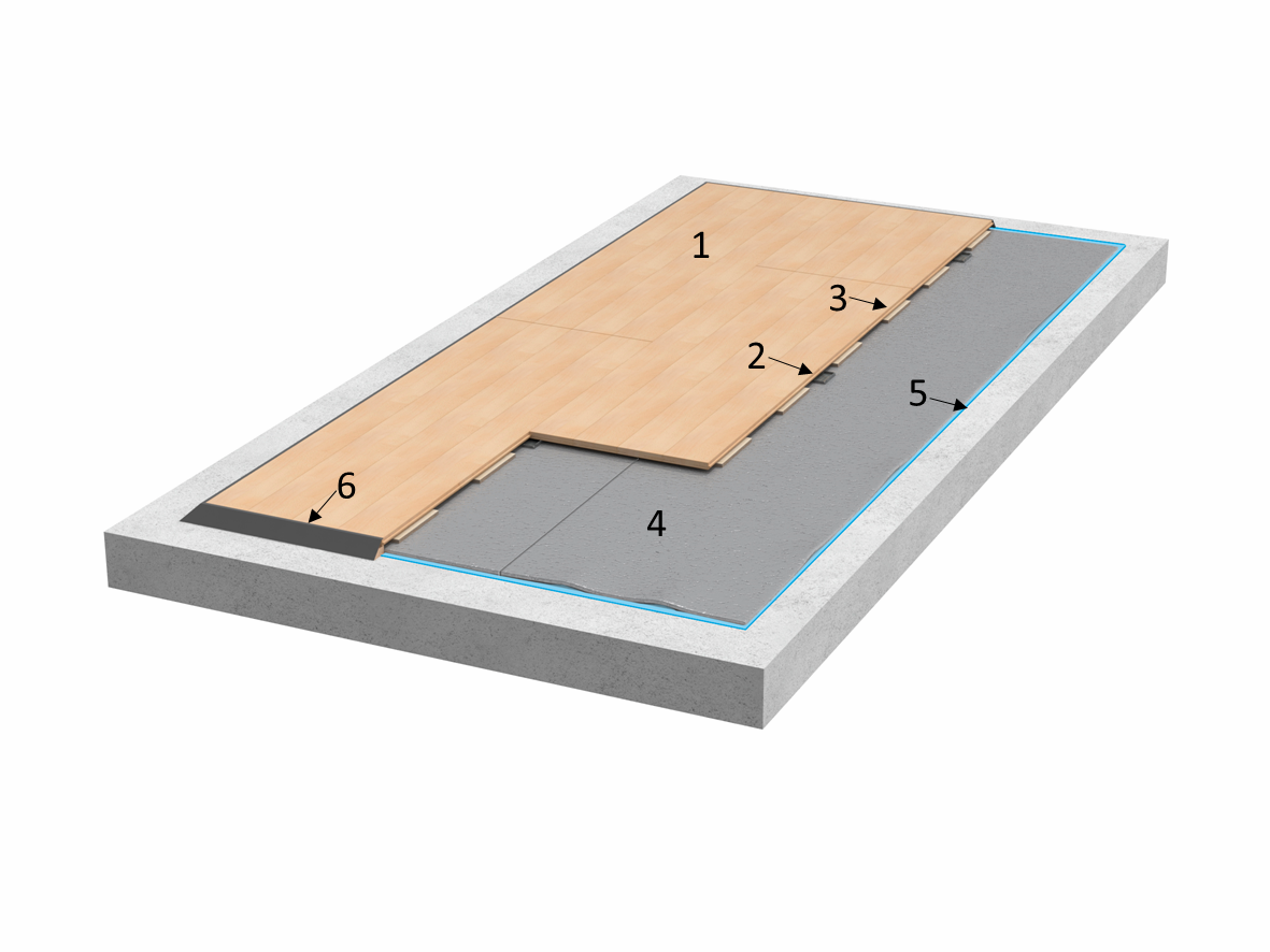 - Moisture barrier on concrete, Junckers 0.20 mm PE membrane