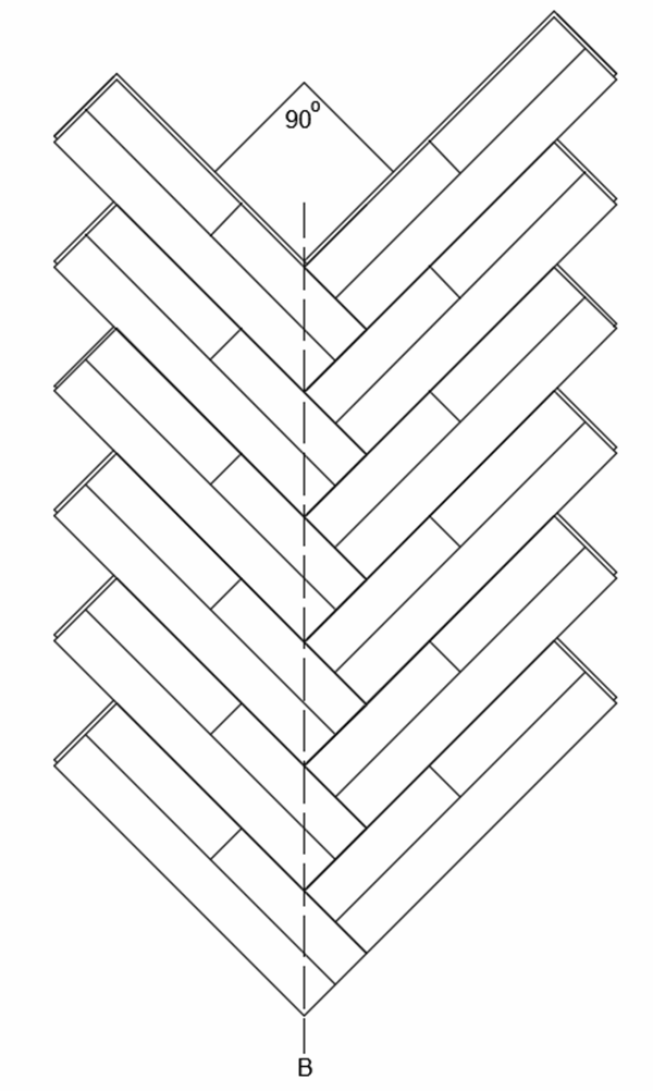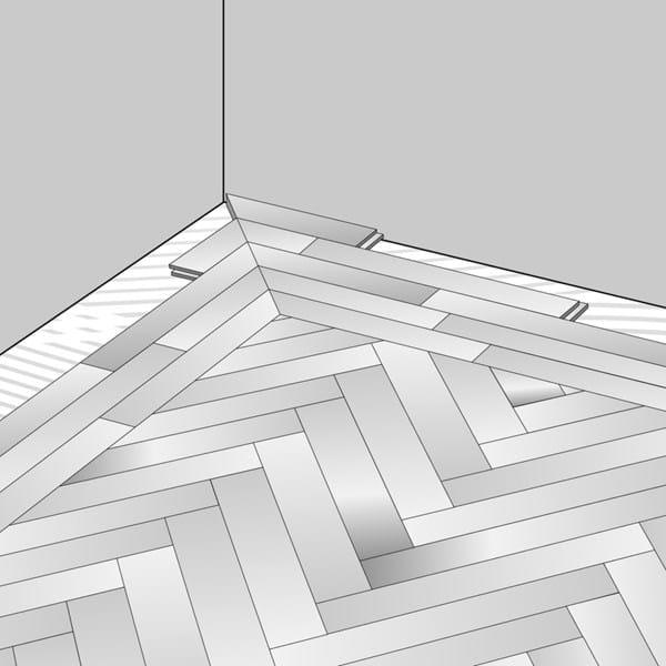 Twin Herringbone staves must NOT be glued in the tongue and groove. However staves shorter than 100 mm (3 15/16″) may as an exception be glued in the heading joints at walls or borders and in the tongue and groove at the last row of staves. If the floor is to be installed with a border, see section “finishing with a border”.