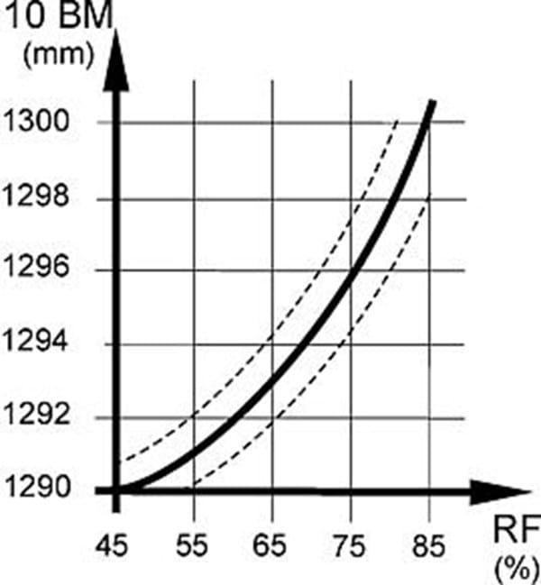 In order to keep moisture related movements of the floor to a minimum, the relative humidity should be stable for extended periods of time. The humidity range, i.e. the difference between the lowest and the highest relative humidity during the year, should not exceed 25 to 30 %-points.