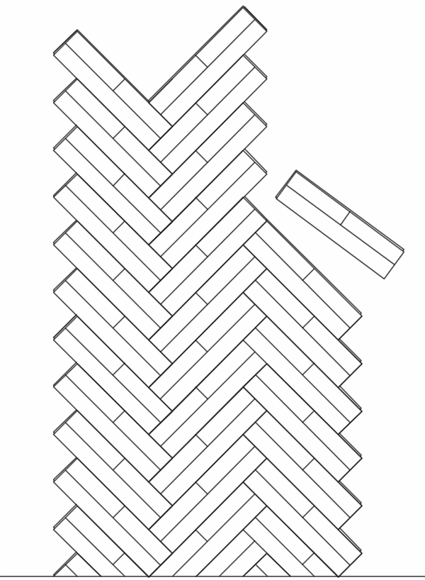 Wooden floors slightly shrinks / expands, when the temperature and humidity is changing. It is therefore necessary to install according to a 10-board measurement, when laying twin-herringbone staves in patterns, where the staves are placed parallel over larger distances, e.g. a ladder pattern. Please note that this instruction does not apply to the herringbone pattern.