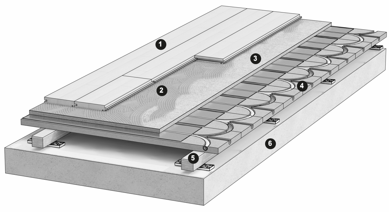 It is extremely important to design the underfloor heating system in such a way as to achieve a regular temperature distribution across the top surface of the subfloor.